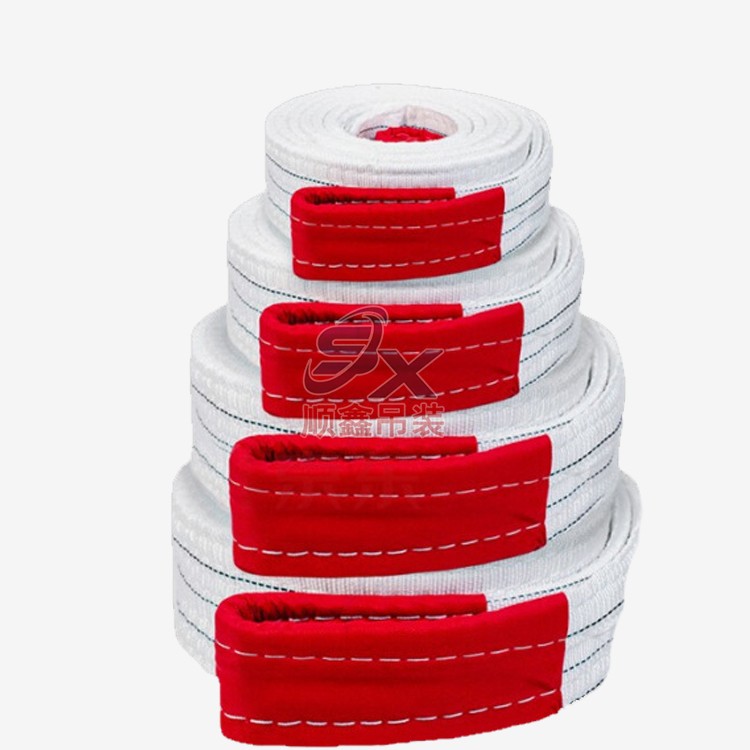 扁平吊帶采用4-8層縫制,整體結(jié)構(gòu)嚴實,加密針織,工業(yè)縫紉機一次成型,避免多接頭導致拉力不均。加固吊耳,提升耐磨度,不易打滑,提升瞬間緩沖拉力。其接觸面較寬且平整,不易損傷被吊物。